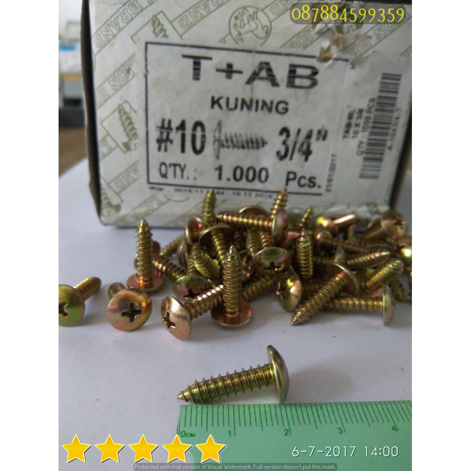 Sekrup T / TS / TAB / TSAB / TSAT KuningDiameter drat ~ 5 mmPanjang Drat ~ 19 mm ( Tidak termasuk kepala)Kepala obeng plus#sekrup #baut #sekrupruping #sekruproofing #sekrupbaja #mur #alattukang #skrup #