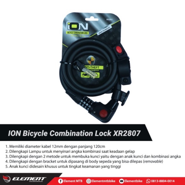 #Kunci Spiral with Kode ION XR 2807Merk : IONPanjang : 120mmTebal : 12mmWarna : HitamJapan Technology, Anti