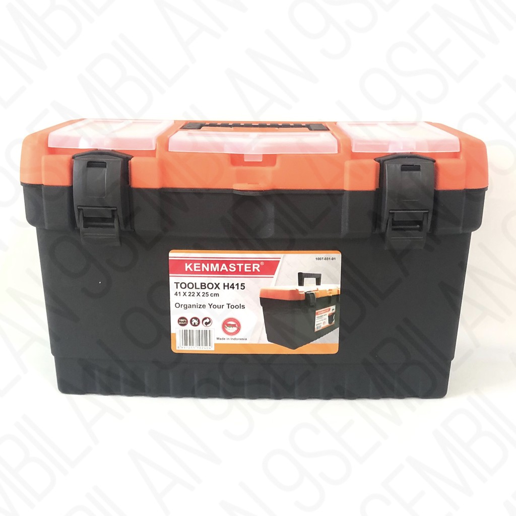 Wajib menggunakan asuransi. Barang mudah pecah dan retak di pengiriman. Kerusakan pengiriman tanpa asuransi tidak akan diganti- Produk berkualitas dari KENMASTER dengan harga terjangkau- Kotak perkakas ukuran besar untuk kebutuhan Anda- Dilengkapi 3 buah kotak mini untuk menyimpan baut- Dilengkapi dengan sekat pemisah dalam kotak- Terbuat dari plastik berkualitas- Dimensi produk : 41 cm x 22 cm x 25 cmKenmaster Tool Box H415 merupakan kotak perkakas ukuran besar yang dapat diisi dengan berbagai macam perkakas mesin maupun perkakas tangan.Tool box terdiri dari 2 bagian yang dipisahkan oleh sekat yang dapat diambil. Bagian utama untuk menyimpan perkakas mesin seperti mesin bor dan mesin gerinda, sedangkan bagian tersekat untuk menyimpan perkakas tangan seperti obeng, tang, palu.Tool box juga dilengkapi dengan 3 buah kotak mini pada bagian atas untuk menyimpan benda-benda kecil seperti baut, mur, ring, sekrup, dan fisc