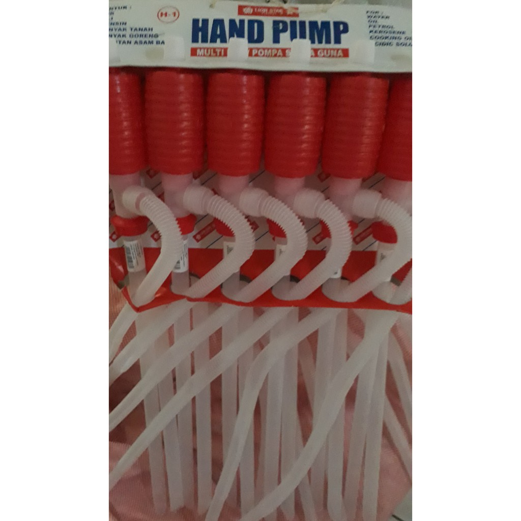 Pompa ini memudahkan anda untuk memindahkan dari satu tempat lain. Dapat digunakan untuk memompa :-Air-Oli-Bensin-Minyak Tanah-Minyak Goreng-Larutan asam basaSpesifikasi Produk :-Merk : Lion Star-Model : Pompa Tangan Manual-Bahan : Plastik Berkualitas-Ukuran : +/- P 58 cm L 5 cm-Berat : +/- 1200 gramHarga untuk : 1 lu