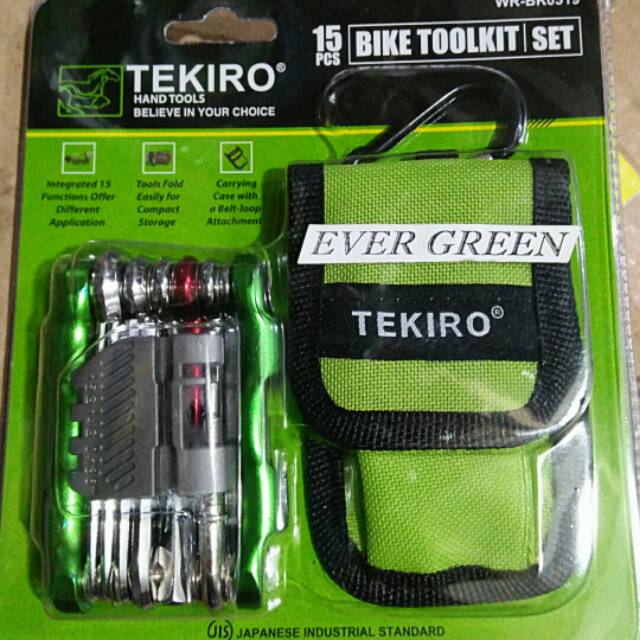 - - - - - - - Gantungan Kunci - - - - - - - -- - Kunci L Lipat 15 pcs Serbaguna - -- Merk : TEKIRO - Japan- Model : Lipat - Model Fungsi : 15 pcs - Kualitas Product sangat baik.- Dan sangat cocok yg Hobby bersepeda.- Material : Hard ChRome - Vanadium - Finishing : Mirror FinishedTahan Gores/Karat- Rangka dan Gantungan : Alloy Steel ===============================Satu set terdiri dari:- 7 pcs : Kunci L 2mm, 2.5mm, 3mm, 4mm, 5mm, 6mm, 8mm- 2 pcs : Kunci L bintang T10, T25- 2 pcs : Obeng tip flat 5mm, PH2- 1 pcs : Alat Pemotong Rantai Sepeda / Chain Wrench- 3 size : Kunci Jari Jari / Screw Spoke Wrench (14G, 15G, 0.136in)- Kantong khusus/Pocket Pinggang untuk kunci L lipat yg modern.===============================- Sangat cocok Koleksi untuk para Traveling, praktis dibawa kemana2, simple, dan PROFESSIONAL.- Bisa digantung sebagai Gantungan Kunci Modern , juga pada Ikat Pinggang untuk para mekanik atau pemakai perorangan dan juga bisa masuk dalam saku.- Kunci L Lipat 15 pcs TEKIRO ini adalah kunci serbaguna yg didesign khusus untuk para pengguna sepeda. Dalam satu set terdapat semua kunci yang dibutuhkan untuk mengencangkan, mengendurkan, ataupun melakukan perbaikan darurat sepeda anda. Dengan bentuk yang kecil, ergonomis dan kompak, kunci ini sangat mudah dibawa ke mana2.* Material : ChRome - Vanadium* Finishing Silver Matt* High Torque* High Class Quality and Professional* Class JIS (Japanese Industrial Standard)* TEKIRO CORPORATION