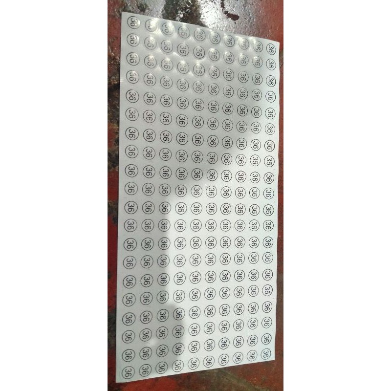 stiker nomer untuk sendal&sepatu Nomer yg tersedia:A) SATUAN { 1 lembar cuma 1nomer } 36 s/d 43B) nomer seri 21-25,26-30,31-35 C) nomer kosongMohon cantumkan pada keterangan nomer yang di inginkan Kakao tidak mencantumkan kami akan kirim nomer kosong#sizetempel#nombert