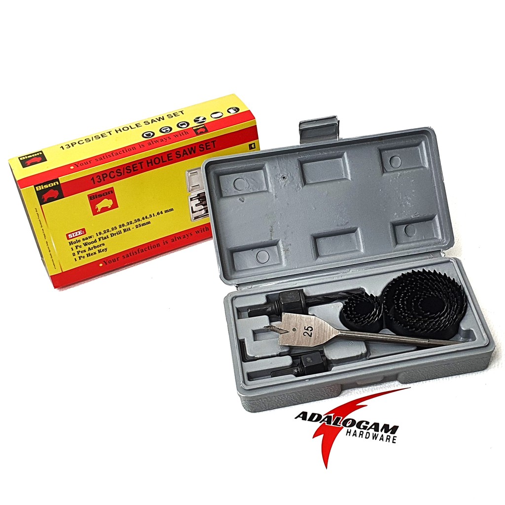 HARGA 1 SET SESUAI GAMBAR.Hole Saw Set 13 pcs merupakan aksesoris perkakas yang wajib dimiliki di rumah Anda. Alat ini dapat digunakan untuk membuat lubang pada kayu, paralon, triplek, dan plastik. Alat ini terdiri dari mata bor dengan berbagai macam ukuran dan dikemas dengan kotak plastik dengan mudah disimpan dan dibawa kemana saja.Kelengkapan Produk :Hole saw : 19 - 22 - 25 - 29 - 32 - 38 - 44 - 51 - 64 mm1 Pc Wood Flat Drill Bit - 25 mm2 Pcs Arbors1 Pc Hex Keyterima