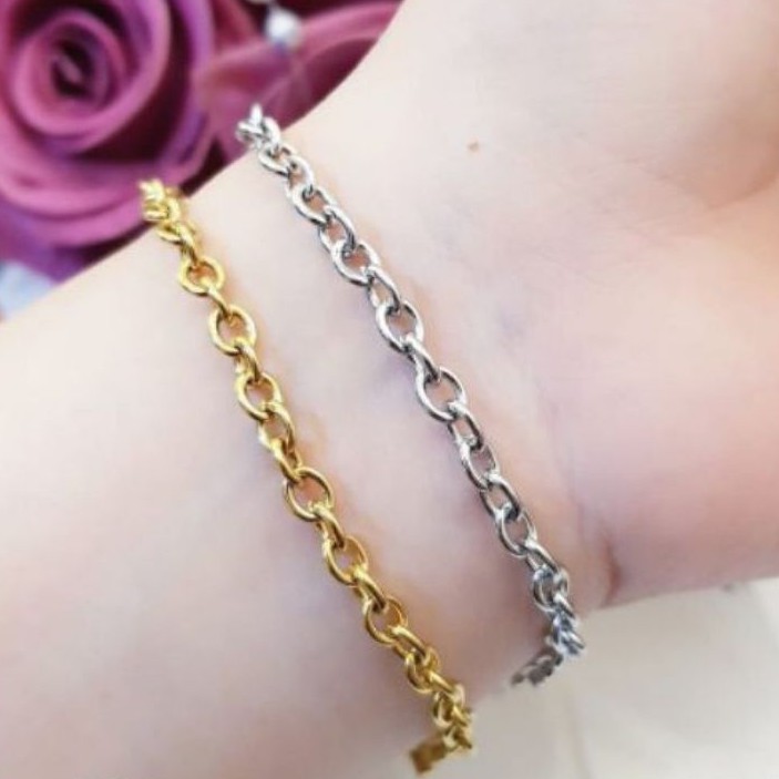 Gelang Titanium Anti Alergi Anti iritasi>>BAHAN:Stainless stell/anti karat>>MODEL:Nuri>>SIZE :17cm hingga 20cmVARIAN :GOLD &Silver gelang cantik dan tidak neko ne
